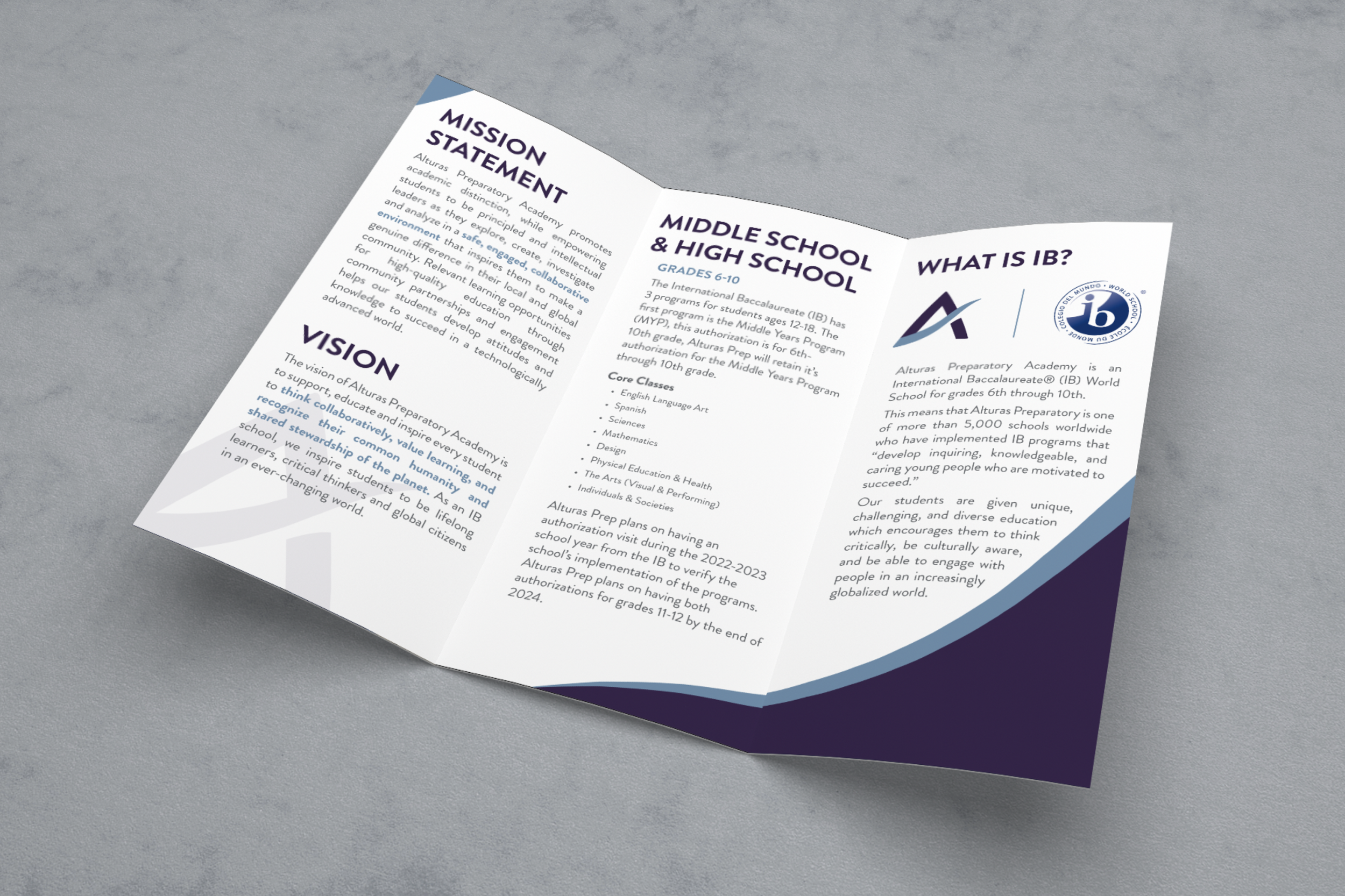 Alturas Preparatory Academy is the newest charter school in Idaho Falls, covering grades 6-12. A new academic logo and brand were needed for the new school.